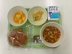 はいがパン・牛乳・チリコンカーン・野菜ソテー・ミックスフルーツ