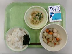 むぎごはん・牛乳・ふくめ煮・ごまじょうゆあえ・のりのつくだ煮