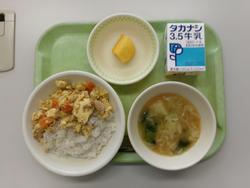 むぎごはん・牛乳・親子丼の具・みそ汁・かき