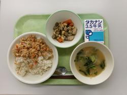 はいがごはん・牛乳・ツナそぼろ・五目豆・みそ汁