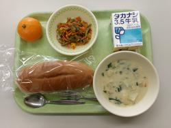 くろパン・牛乳・ホワイトシチュー・ごぼうソテー・みかん