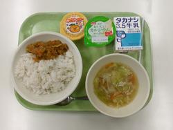 麦ごはん・牛乳・カレーピラフの具・野菜スープ・セレクトデザート