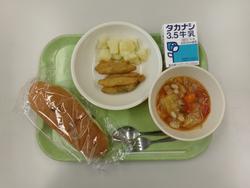 ぶどうパン・牛乳・いりこフライ・こふきいも・ミネストローネ