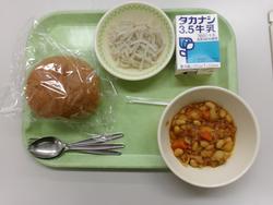 はいがパン・牛乳・チリコンカーン・じゃがいものソテー