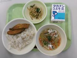 むぎごはん・牛乳・いわしのかば焼き・ごまじょうゆあえ・沢煮椀