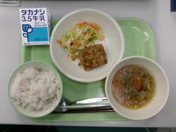 むぎごはん・牛乳・ぶりだいこん・みそ汁・納豆