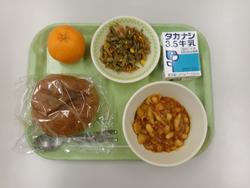 はいがパン・牛乳・チリコンカーン・ごぼうソテー・ぽんかん