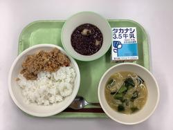ごはん・牛乳・ツナそぼろ・味噌汁・白玉ぜんざい