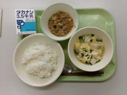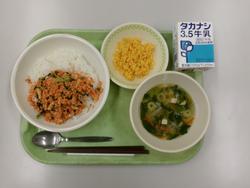 ごはん・牛乳・菜の花ごはんの具(さけそぼろ)(卵そぼろ)・すまし汁