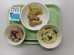せきはん・牛乳・鶏肉の甘辛煮・おひたし・かきたま汁・ごま塩