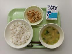 ごはん・牛乳・生揚げのそぼろ煮・磯香あえ