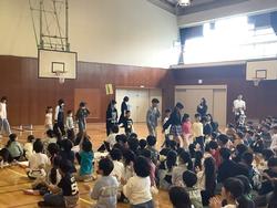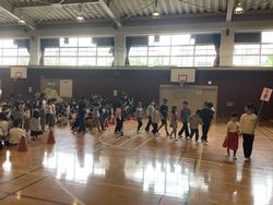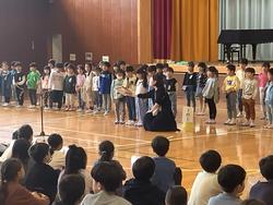 4月15日(水)3校時に体育館で「1年生仲間入りの会」が行われました。6年生に手を引かれた1年生が入場すると手拍子と歓声が。各学年からプレゼントをもらった後には、1年生からの言葉です。そのあと、全校でゲームをして楽しい時間をすごしました。