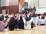 ミニコンサートと題しまして、プロミュージシャンの”Everly”さんをお迎えして演奏を聴きました。(1~4年生・678910組)演奏が始まると、リズムに合わせて体を動かしたり、手拍子をしたりと、子どもたちがすてきな”音”にひきこまれ、音楽を楽しんでいました。すてきな演奏をありがとうございました。