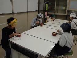 5年生の家庭科の学習の様子です。調理実習でみそ汁づくりに取り組んでいました。グループで力を合わせて、だしをとったり、みんなで決めた野菜を入れたりするなど、各グループ個性あふれるみそ汁ができていました。みんなおいしそうにいただいていました。