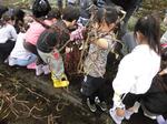 先週、雨で延期した「サツマイモほり」を実施しました。不動丸ファームの方々にほり方を教わり、見つけたサツマイモの周りを掘ったり、引っ張ったりしながらたくさん撮りました。子どもたちからも、「とれた!」「なかなかでてこない!」など、土とかかわりながら収穫を喜んでいました。不動丸ファームの皆様、本日もありがとうございました。
