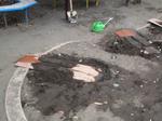 5年生が、砂場で理科の実験を行いました。坂にした板に砂をもり、川にみたてた水路に水を流します。水路が直線の時、曲線のとき、流れていく水によって水路はどのように変化していくでしょうか…。流れる水の3作用。確認しできました。