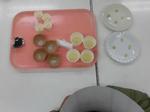 食事を楽しむために、五感をつかいます。目で楽しんだり、触感を味わったりと様々です。見た目では区別がつきにくい「塩」と「砂糖」。塩と思い込んでなめてみると、砂糖だとわかり、普段なら甘い砂糖がおいしく感じられない感覚を味わったりするなど、様々な素材を試食しながら、味覚とはどういうものかを学びました。