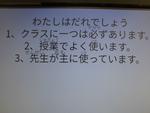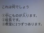「スリーヒントクイズ!これは何でしょう?わたしはだれでしょう?」。TV集会で、集会委員会さんがクイズを出題しました。そのうちの2問です。答えがわかりますか?正解は、「掃除ロッカー」と「黒板」です。ほかにも、たくさんの問題が用意されていました。集会委員会さん、朝から盛り上がる楽しい企画をありがとう!