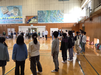 5年生は体育館に集まり、先生の紹介やこれからの学校生活の話を聞きました。