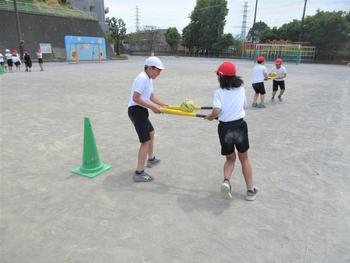 走る運動に加えて用具を扱う活動を取り入れ、バランス感覚にも意識して取り組んでいます。
