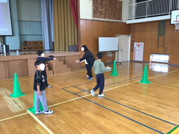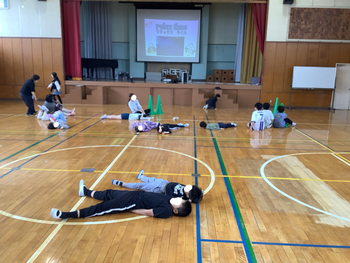 体育では「体つくり運動」を行いました。