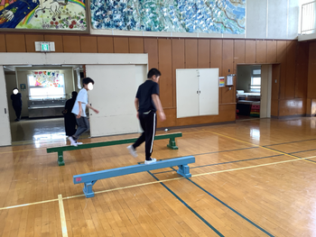 平均台を慎重に渡る活動もしています!上手にできたね!