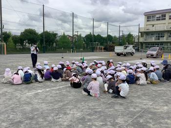 雨が心配でしたが、校庭で2年生から6年生までそろって、