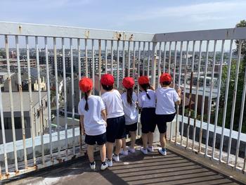 また、生活科の学習では学校探検を行いました。教室の外に出て、職員室や図書室、屋上など学校のいろいろな場所を見て回り、「ここは何をするところなのかな?」と興味津々の様子でした。