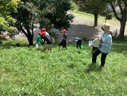 令和7年10月2日(木)、5組の1・2年生が生活科の学習で、5組の3年生が理科の学習で富士見台公園へ行きました。どんなところにどんな生き物がいるのか探したり、見つけた昆虫の体のつくりを観察したりしました。とても楽しい学習になりました。・・・が・・・蚊がたくさんいて悪戦苦闘しました・・・