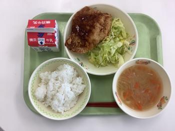 令和8年1月29日(木)、給食で「とんかつ」が出ました。1年に1度しか出ない貴重なメニュー。黄金色でカリッと揚がった大きなとんかつの登場に、教室では歓喜の声が上がっていました。