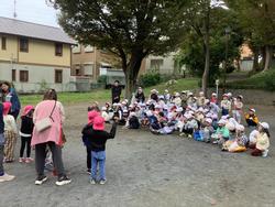令和7年10月23日(木)、1年生が生活科「あきとなかよし」の学習で、富士見台公園と岩井町公園へ行きました。どんぐりやどんぐりのかさ、落ち葉、木の枝など、たくさんの「あき」と触れ合いました。富士見台公園では、岩井保育園の年長さんと偶然一緒に。「秋探しをしているんだよ」という1年生に「秋って、何?」と年長さん。どんぐりや落ち葉など、自分たちが見付けたものを高く掲げながら「秋って、どんぐりや落ち葉だよ」と嬉しそうに答えていました。