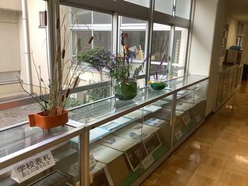 用務員さんが生けてくださった草花が、職員室前の廊下に飾ってあります。秋にぴったりで、趣があります。ご来校の際は、ぜひ職員室前の「フラワーストリート・秋」へお越しください。