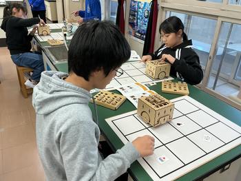 子ども科学館の講師をお招きしたプログラミング体験学習では、教室のあちこちからそんな声が響きました。PETSというロボットを使い、子どもたちは命令を組み合わせてゴールを目指します。