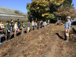 11月26日、深谷っ子農園に植えたさつまいもの収穫をしました。今年度は植えた時期の天候のせいか、小ぶりで数も少なかったのですが、子どもたちは、地域の方やボランティアの方に手伝ってもらいながら、一生懸命に土を掘り、さつまいもを収穫していました。収穫したさつまいもの一部は給食の味噌汁に入れて、全校のみんなに食べてもらいました。収穫する大変さを実感していました。