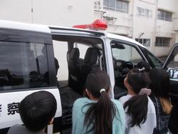12月9日、戸塚警察署の方が来校し出前授業を行いました。事件や事故からまちを守るために、警察の方がどのような仕事をしてくれているのかについて、話を聞くことができました。警察官が使っている盾やさすまたを実際に見たり触ったりして、その重さを実感していました。またアクティブ交番の車も見せてもらい、備わっている装置に興味を示していました。