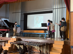 2月13日、小学校最後の授業参観では、思いを込めた図工の作品の紹介や、卒業前の今だから伝えたい自分の推しの推薦をしました。また、今後入りたい部活や将来の夢について英語で伝え合いました。最後には、何度も練習を重ねた「スパークル」の合奏も披露しました。緊張しながらも、これまで頑張ってきた成果を発揮することができ、ほっとした笑顔が見られました。
