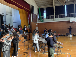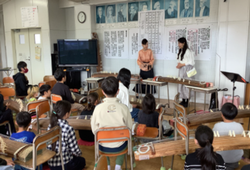 2月17日、琴奏者小谷(おたに)恵子先生をお招きして14面の琴を運び込み、すべての琴を一斉に使い、「さくらさくら」を大合奏しました。七七八(ヒーヒーハー)と声を合わせて練習してきた琴パートと、リコーダーで練習してきた「合いの手」を合わせ、日本の音階の響きを楽しみ、琴を身近に感じている様子でした。