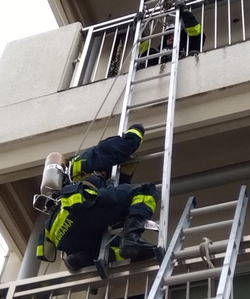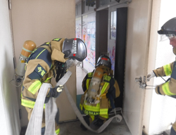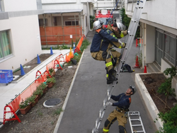 先日、学校が休みとなる三連休中の2日間に、旭区内の消防隊の皆さんが旧校舎を活用して訓練を行いました。
