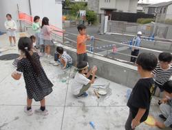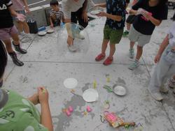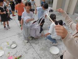1年生の生活科では、「なつとともだち」の学習の一環として、シャボン玉遊びを行いました。子どもたちは、身近にある材料を使って、工夫しながらシャボン玉遊びをしました。