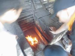 その後は、宿泊施設「エコビレッジ」にて火おこし体験を実施。メタルマッチを使って、着火剤となる自然の素材を自分たちで探し、火を起こす挑戦です。なかなか火が広がらず苦戦する班もありましたが、協力し合いながら大きな火をおこすことができた班もあり、達成感に満ちた表情が印象的でした。