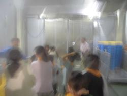 2日目は、朝から「みさき魚市場」へ移動し、まぐろの入札の様子を見学。冷凍されたマグロや水揚げされたばかりの魚を保管する様子に目を輝かせ、超低温倉庫ではその冷たさに驚く児童たちの姿が見られました。