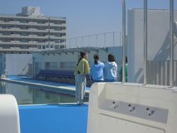 本日、5年生は今年度最後の水泳学習を新校舎の屋上プールで行いました。