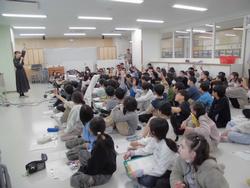 アナウンサー体験:各クラスの代表児童が前に座り、原稿を読み上げるアナウンスに挑戦しました。声の出し方や伝え方の難しさを体験し、真剣な表情が見られました。