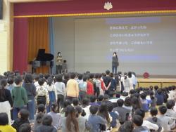 やさしく温かいメロディーに合わせて、子どもたちの伸びやかな歌声が重なり、とても心に残る音楽集会となりました。