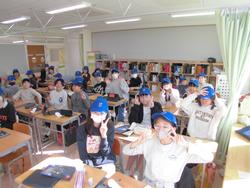 児童たちは、配られたばかりのキャップをうれしそうにかぶり、友達同士で見せ合ったり、鏡をのぞき込んだりしながら、笑顔いっぱいの時間を過ごしていました。