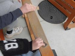 2月16日(月) 6年3組のようす ― 校歌板の修復に取り組んでいます ―