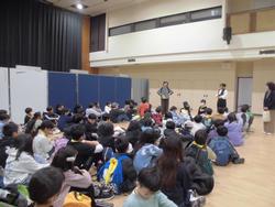 「どこが変わったかな?」と、みんな真剣な表情で考えます。見つけたときの「わかった!」という声や笑顔が体育館いっぱいに広がりました。