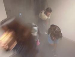 地震・火災のシミュレーション対応や、煙の中を進む煙体験を通して、災害時の行動を考えました。