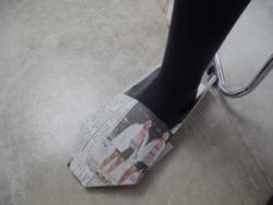 さらに新聞紙を使って災害時に役立つスリッパづくりにも挑戦しました。
