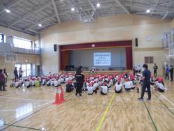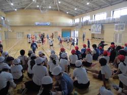 今回は、本校と万騎が原小学校の2校による交流試合です。競技種目はバスケットボール。